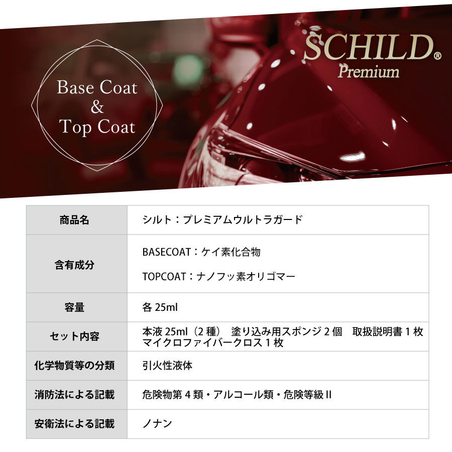 トップコートのふき取りもベースコート同様に行っていきます。トップコート施工後は24時間は水気に触れないに注意して保管して下さい。 詳しい施工方法は【SCHILD®ガラスコーティング施工方法】をご覧ください。