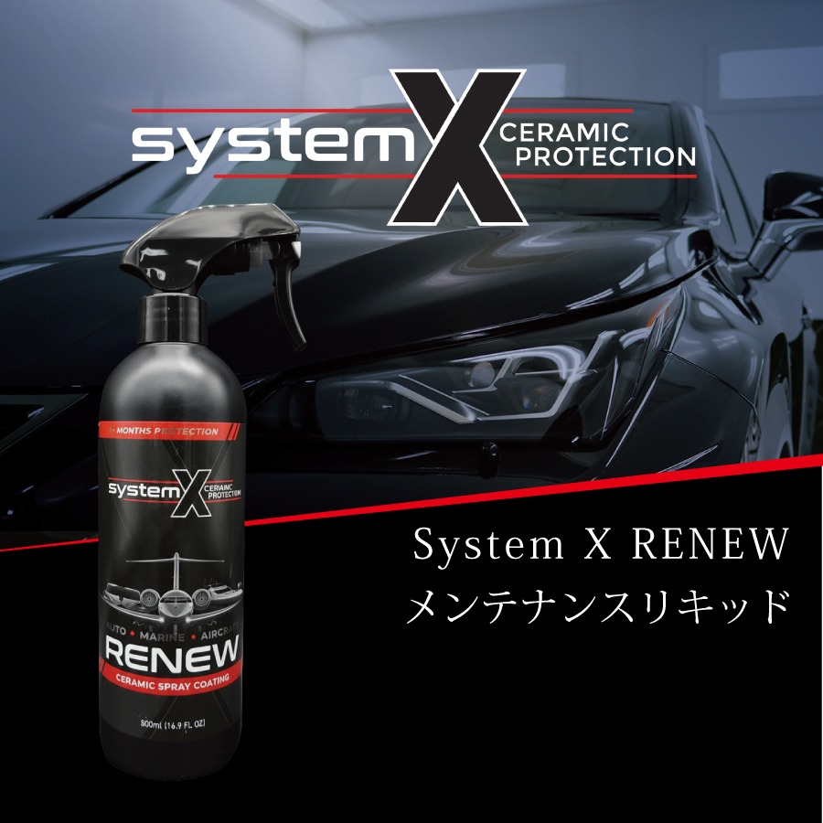 市販品の疎水コーティング剤で満足できない方におすすめの製品です。SystemX メンテナンスリキッドをお楽しみください。
